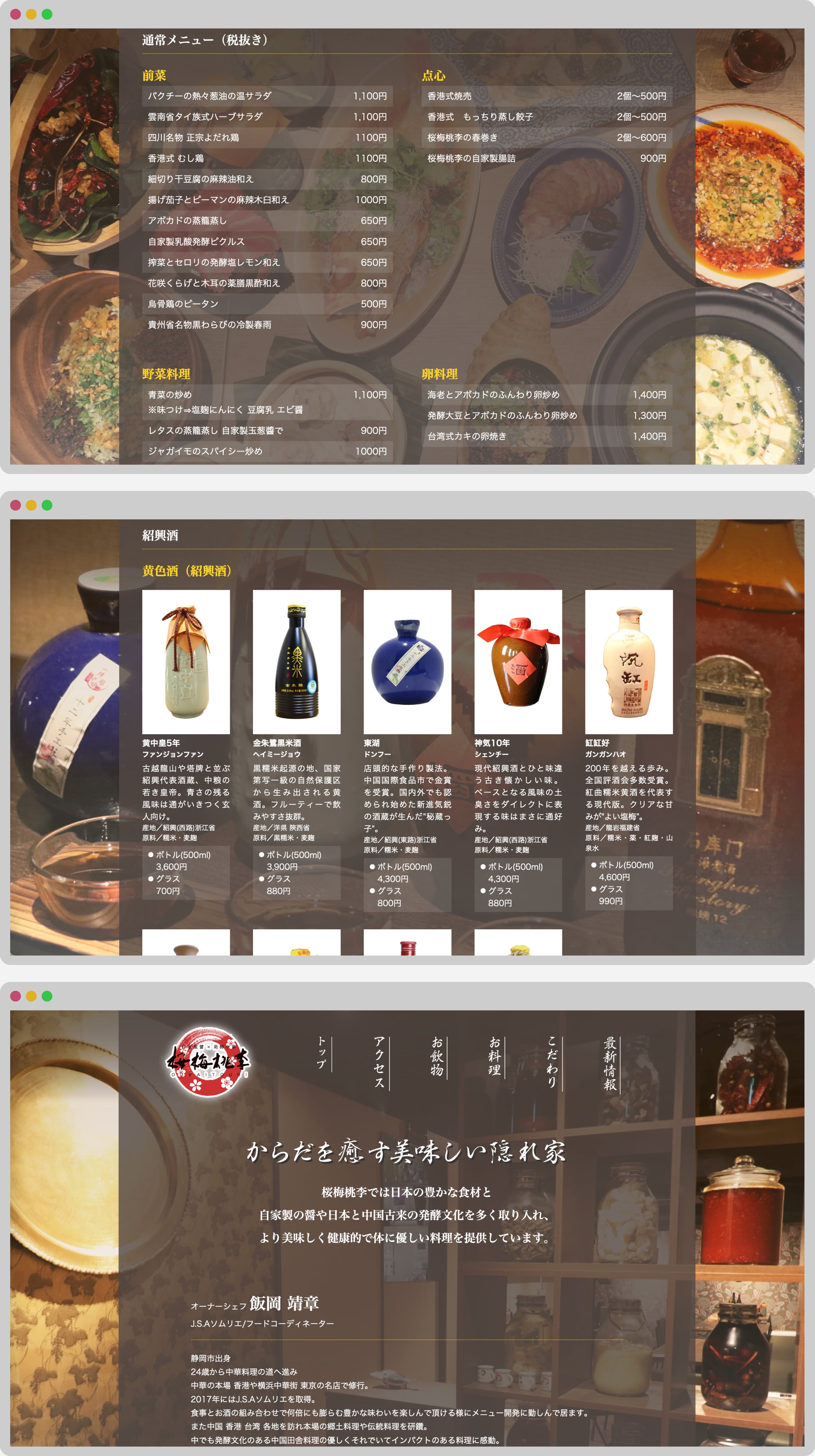 桜梅桃李という中華料理屋のウェブサイトです。