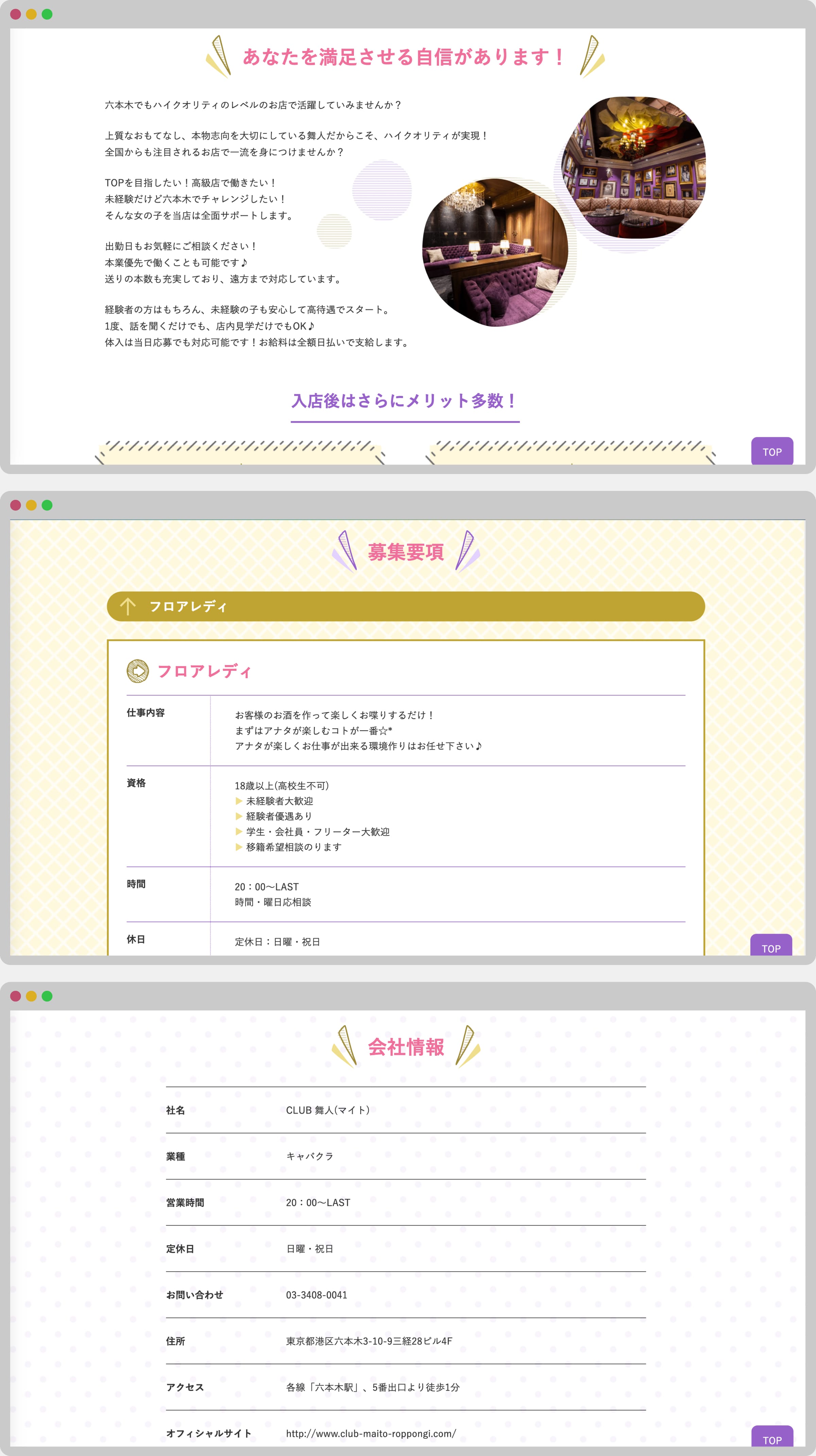 お店は高級店ですが、ターゲットの女性にとって応募のハードルが高くならないよう可愛い感じでデザインして欲しいと依頼され、明るくポップなイメージで作成しました。